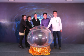 (百度渠道经理田鸿绪先生、百度区域经理许文达先生、南宁家政服务行业协会会长陈燕女士、广西集翔网大信息科技有限公司总经理赵丹女士、广西集翔网大信息科技有限公司直通车项目组项目经理张女士共同启动南宁站百度本地直通车)