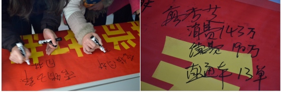 每个部门全体人员都将自己的10天目标写在了口号横幅上,这是誓言!是使命!是必胜的目标和完成任务的决心!