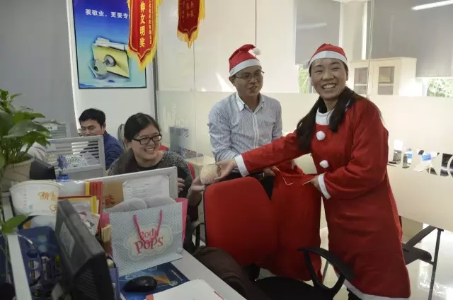 圣诞老人送礼物:憨厚慈祥的圣诞老人为大家送苹果啦!各部门高管身穿圣诞服装,头戴圣诞帽,背着重重的圣诞礼物袋为大家带去了平安夜的祝福!鲜嫩多汁的苹果带去的是网大对大家浓浓的祝福。据说平安夜吃苹果可以平平安安哦~