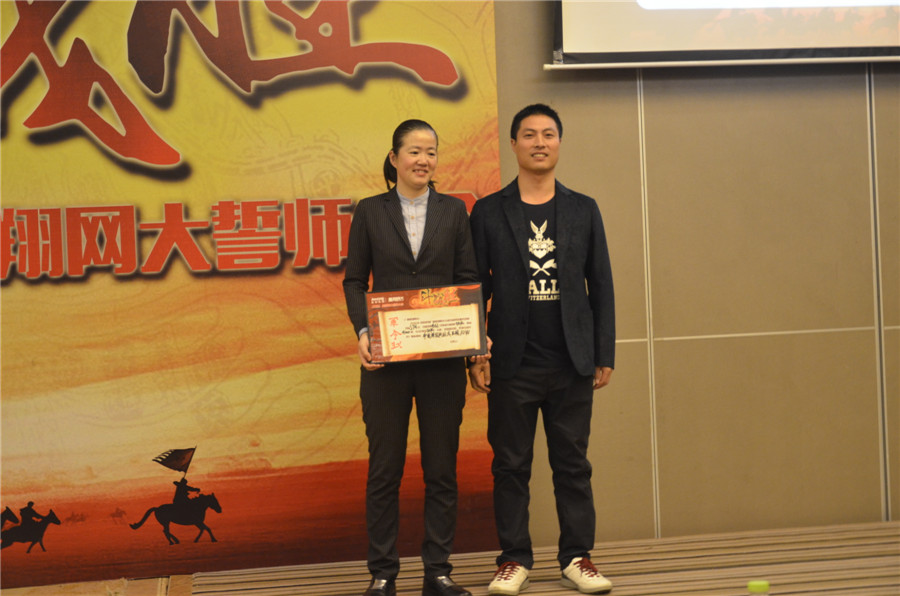 王小东先生为总经理赵丹颁发军令状,下达2016年集翔网大整年目标及任务