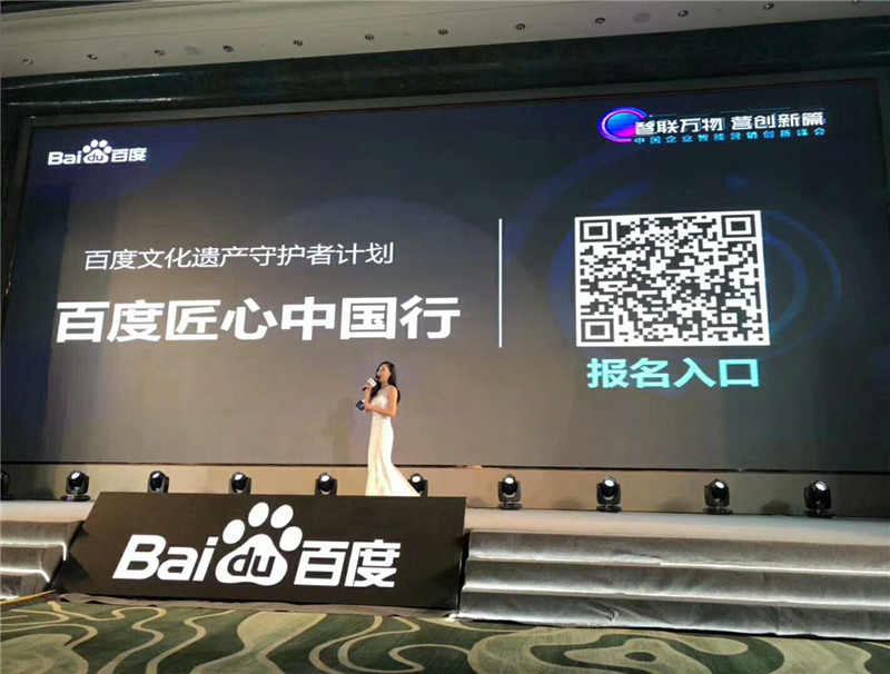 随后,主持人为在座企业家、媒体朋友们展示了以守卫非物质文化遗产的“百度匠心中国行”行动,并挖掘了多项民间“非遗”项目,继续传承传统文化和艺术魅力。近两年,百度陆续发起了“发现身边的好手艺人”行动和“中国匠魂”行动,传播精益求精、追求极致的敬业态度。我们希望能把他们的故事传扬下去,让匠心精神得以传承,这些行动皆收获了业界的广泛好评。
