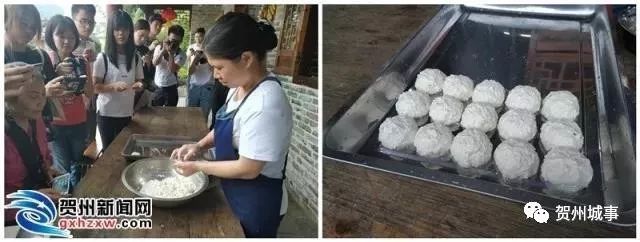 “时来运转三多石,是石林文化宝库中的宝中之宝,堪称贺州石林第一石。据说此石能通人性,替人消灾,送人福气,令人时来运转,只要你闭上眼睛,平心静气,摸摸此石便可得‘三多’,即多福、多寿、多文采,因此人称此石为‘三多石’。”随着导游的讲解,大家缓缓前行,游在景区途中还品尝到了景区准备的油茶和艾糍等美食。