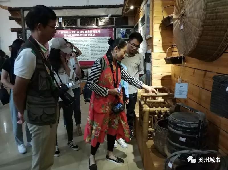 采风团参观了博物馆的生产生活与民俗文化展厅、契约文书展厅、钱币矿冶展厅、木雕展厅、灯具展厅、石雕展厅和耙文化展厅等8个专题展厅,让采风团的成员们近距离感受到了历史上贺州各族群的社会生活。
